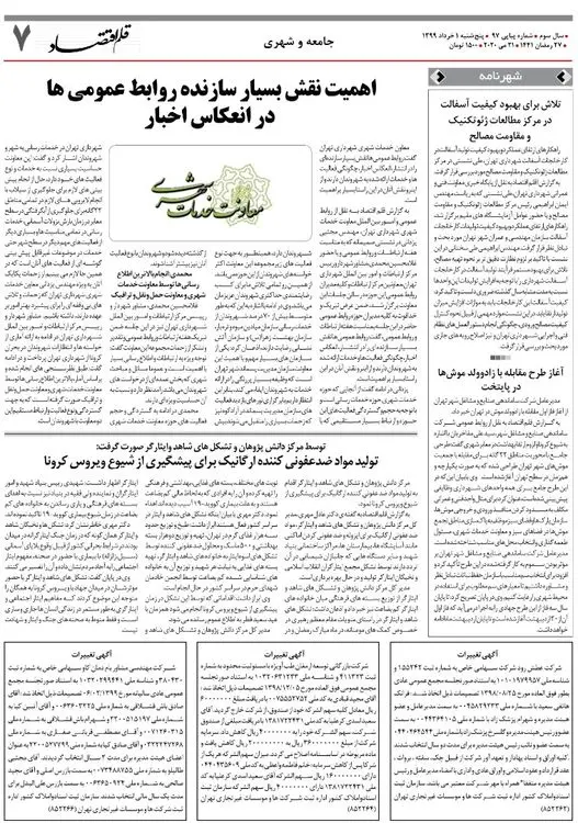 • تازه ترین شماره نشریه چندرسانه ای روابط عمومی شهرداری منطقه ۲۱ تهران